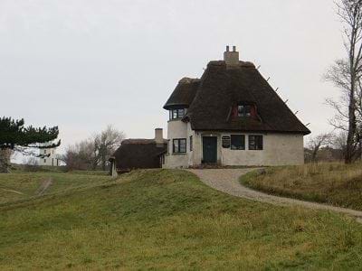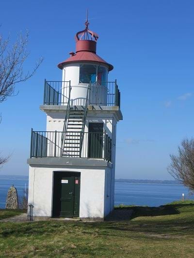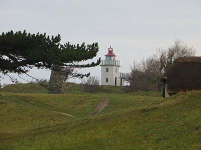 Udsigten fra Spodsbjerg fyr mod Knud Rasmusen Hus og Kattegat