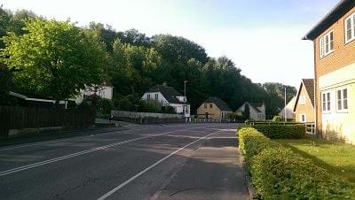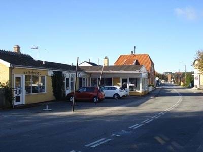 Nybyggeri der bryder det oprindelige facade forløb mod vejen, der er kendetegnet af enten facader helt i vejkant eller grønne levende hegn.