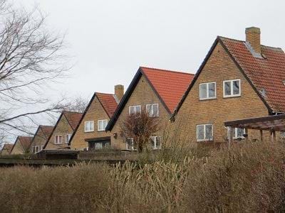 Bebyggelsen fremstår ensartet i udtryk og materialer.