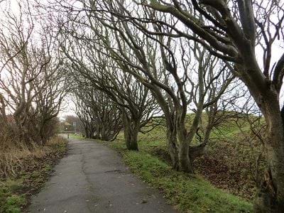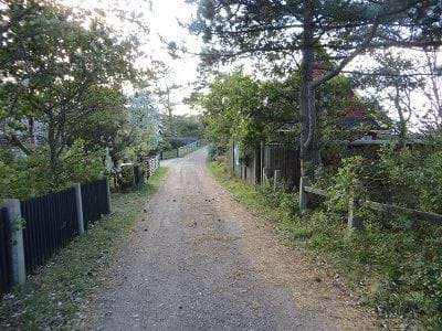 Høje lukkede hegn der forhindrer kontakten med kystlandskabet.