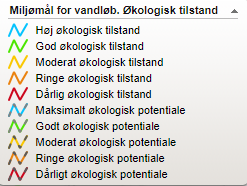 Målsætning og indsatser for konkrete vandløbsstrækninger i Danmark fremgår af Bekendtgørelse om miljømål for overfladevandområder og Bekendtgørelse om indsatsprogrammer for vandområder .