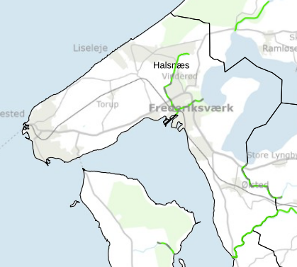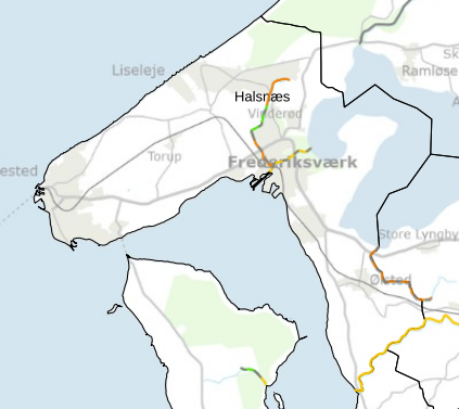 Kort 7.1.1Målsatte vandløb i Halsnæs Kommune