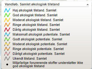 Den nuværende økologiske tilstand eller økologisk potentiale fremgår af MiljøGIS for vandområdeplaner